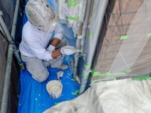 | 4. マスキング(養生) | 塗料が窓や玄関などに付かないよう、しっかりと養生します。 |